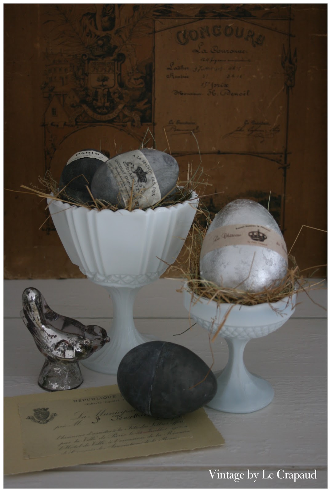 Rustikke gåseæg koksgrå med gamle mærker 45,-